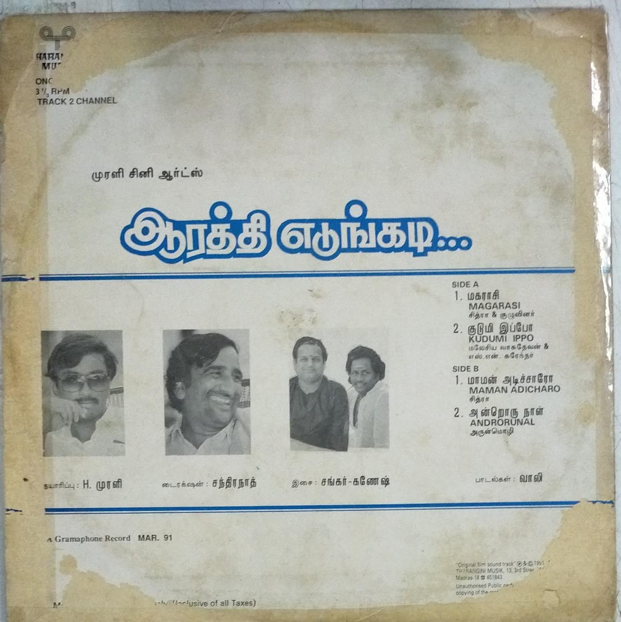 Aarathi Edungadi Tamil Film LP Vinyl Record by Shankar Ganesh