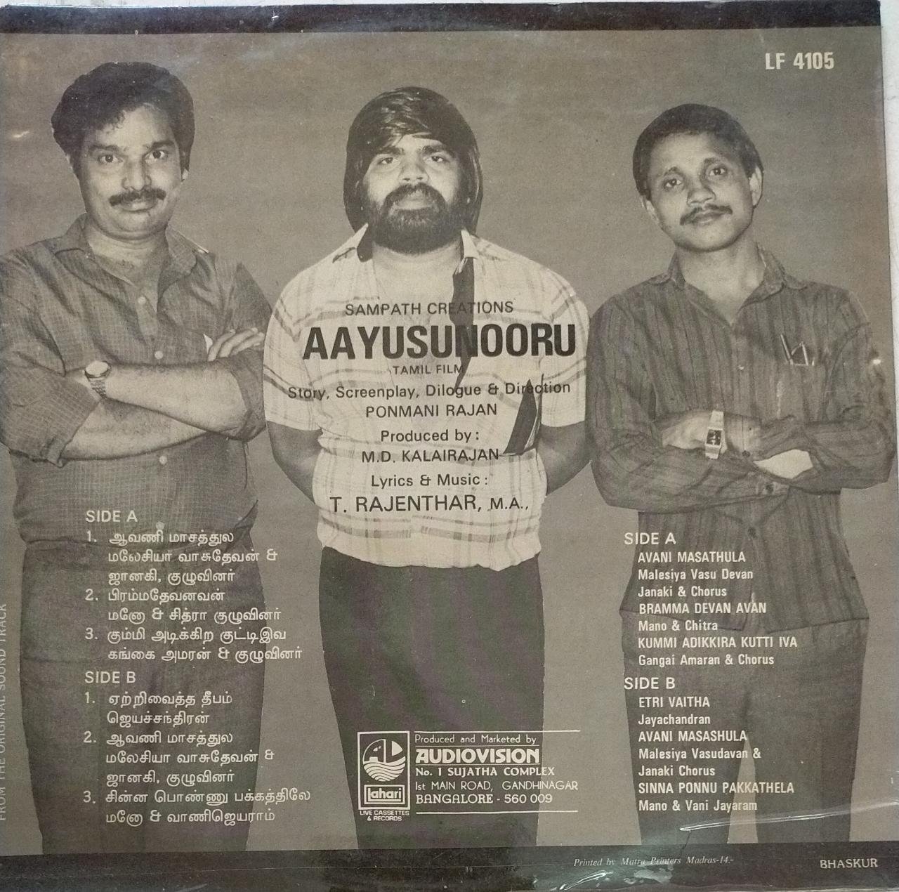 Aayusu nooru Tamil Film LP Vinyl Record by T Rajender