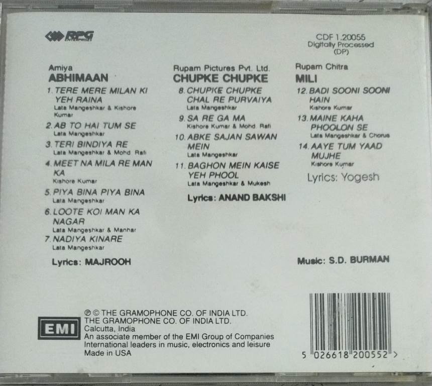 Abhiman- Mili- Chupke Chupke Hindi Film Audio CD by RD Burman