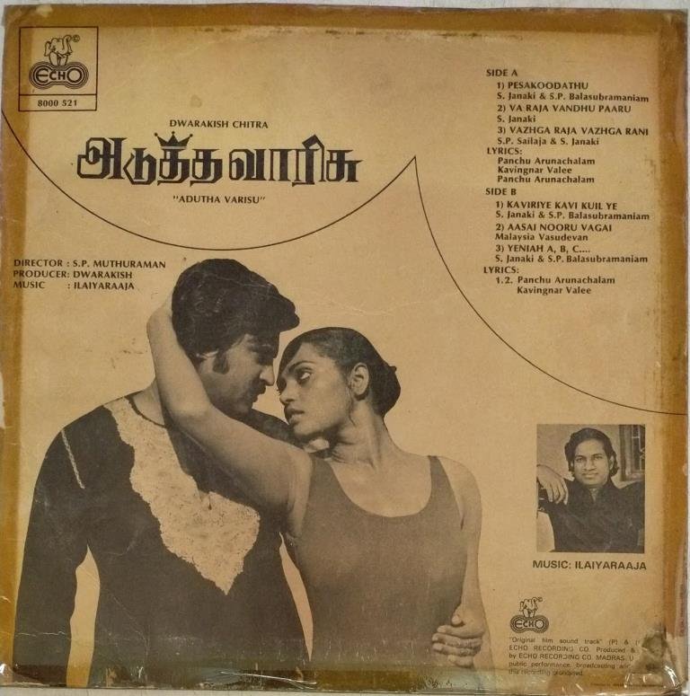 Adutha Varisu Tamil Film LP Vinyl Record by Ilayaraja