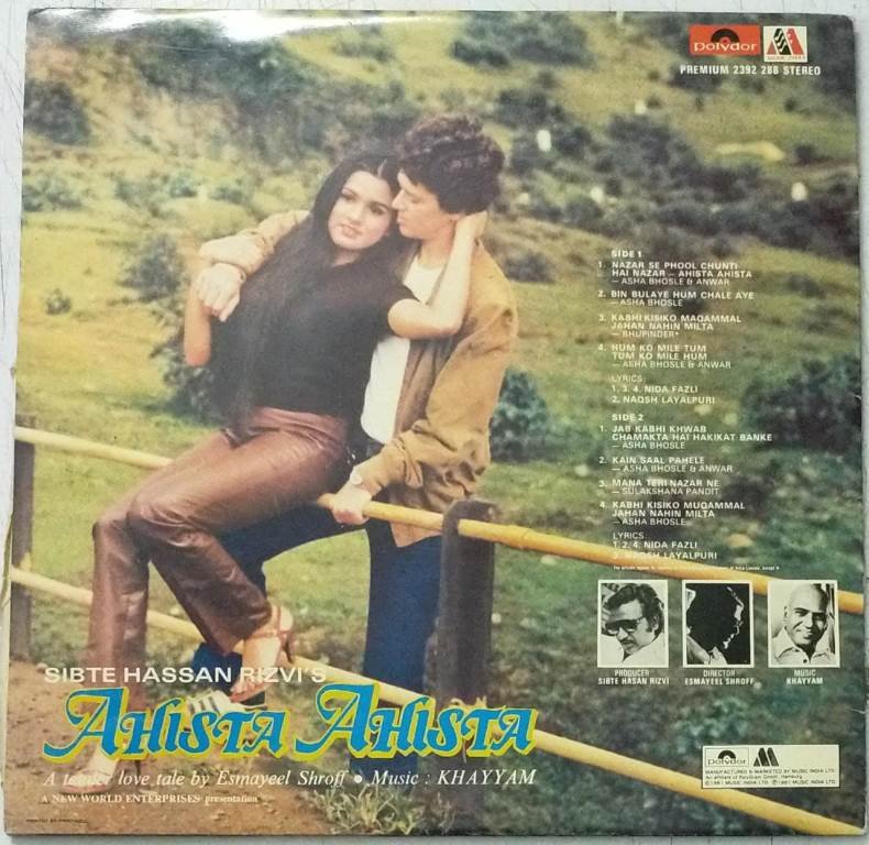 Ahista Ahista Hindi Film LP Vinyl Record by Khaiyyam