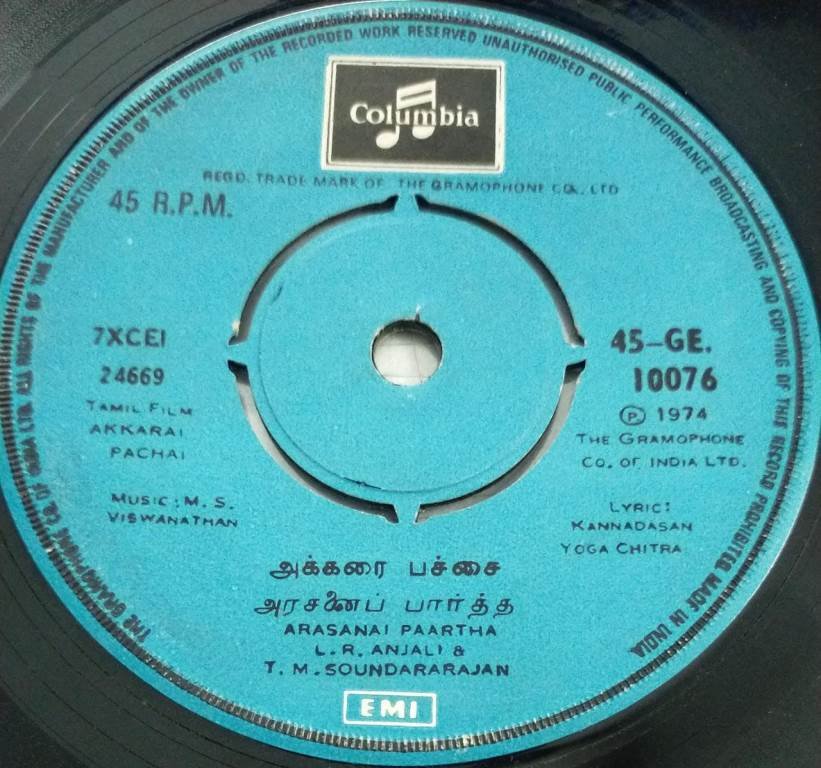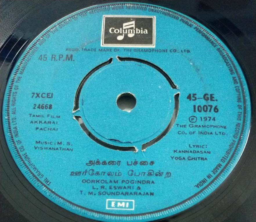 Akkarai Pachai Tamil Film EP Vinyl Record by M S Viswanathan