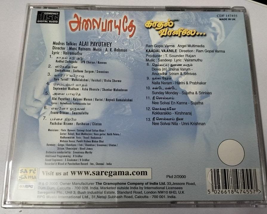 Alaipayuthey- Kadhal Vaanile Tamil Film Audio CD by AR Rahman