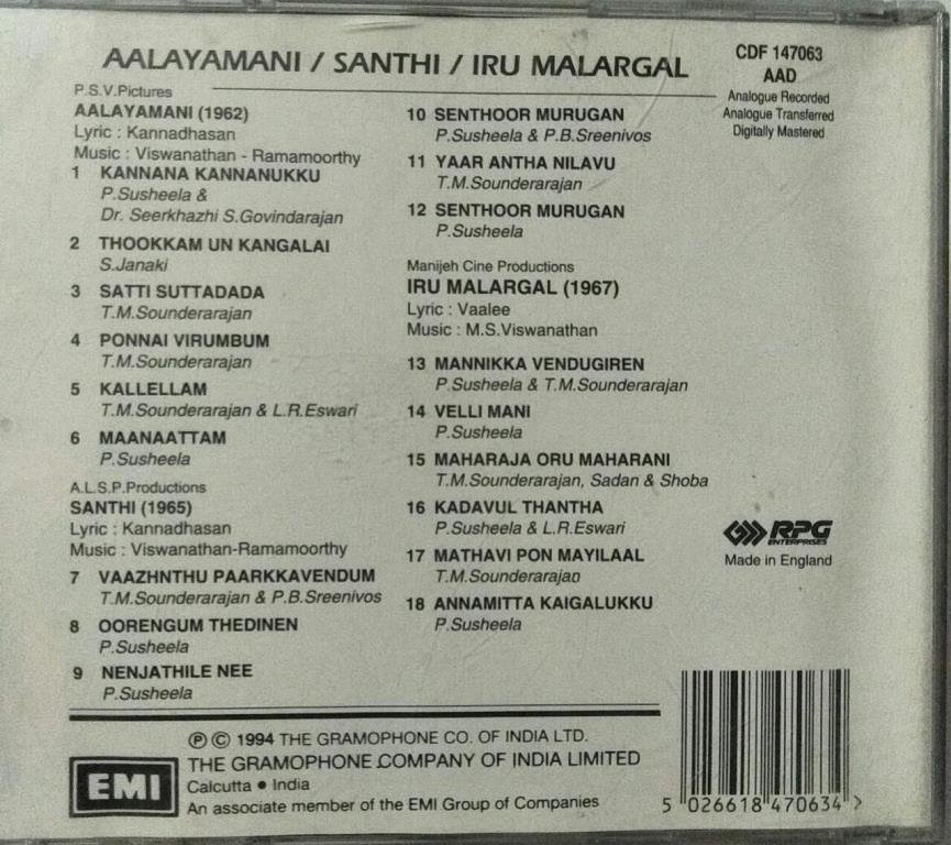 Be the first to review “Alayamani- Shanthi- Iru Malargal Tamil Film Audio CD”
