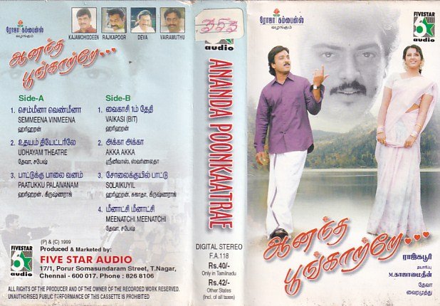 Ananda Poonkaatre Tamil Film Audio Cassette by Deva