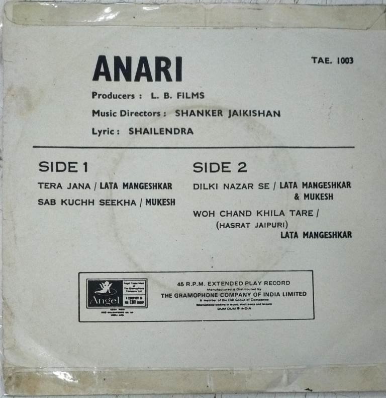 Anari Hindi Film EP Vinyl Record by Shankar Jaikishan