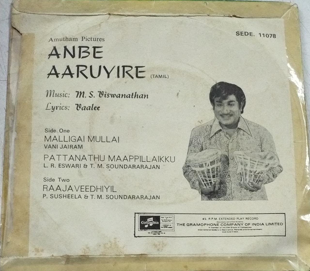 Anbe Aaruyire Tamil Film EP Vinyl Record by M S Viswanathan