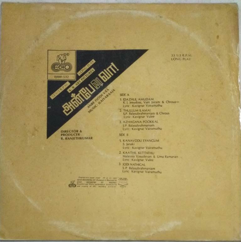 Anbe Oodi Vaa Tamil Film LP Vinyl Record by Ilayaraaja