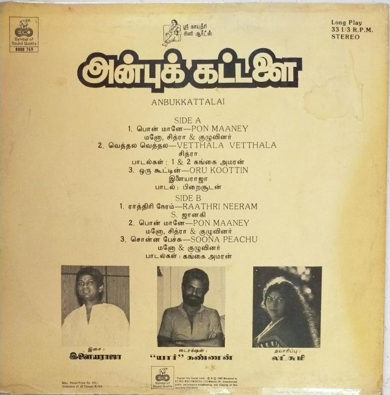 Be the first to review “Anbu Kattalai Tamil Film LP Vinyl Record by Ilayaraja”