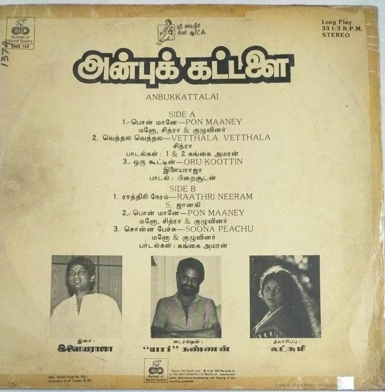 Anbukkattalai Tamil Film LP Vinyl Record by Ilayaraaja
