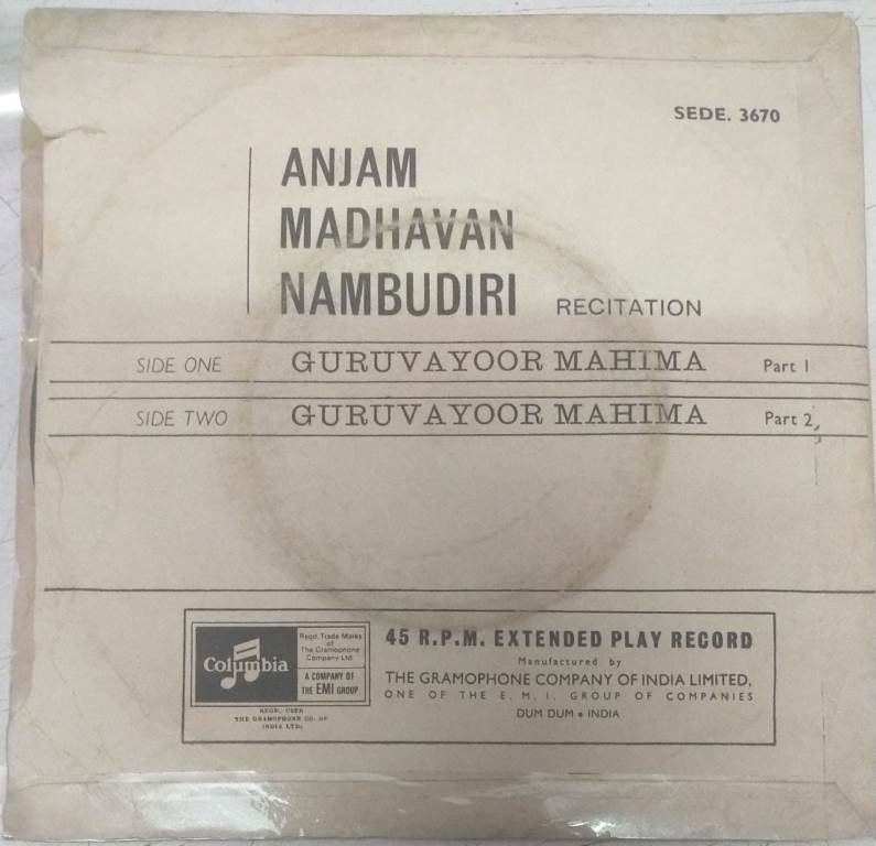 Anjam Madhavan Nambudiri Recitation EP Vinyl Record