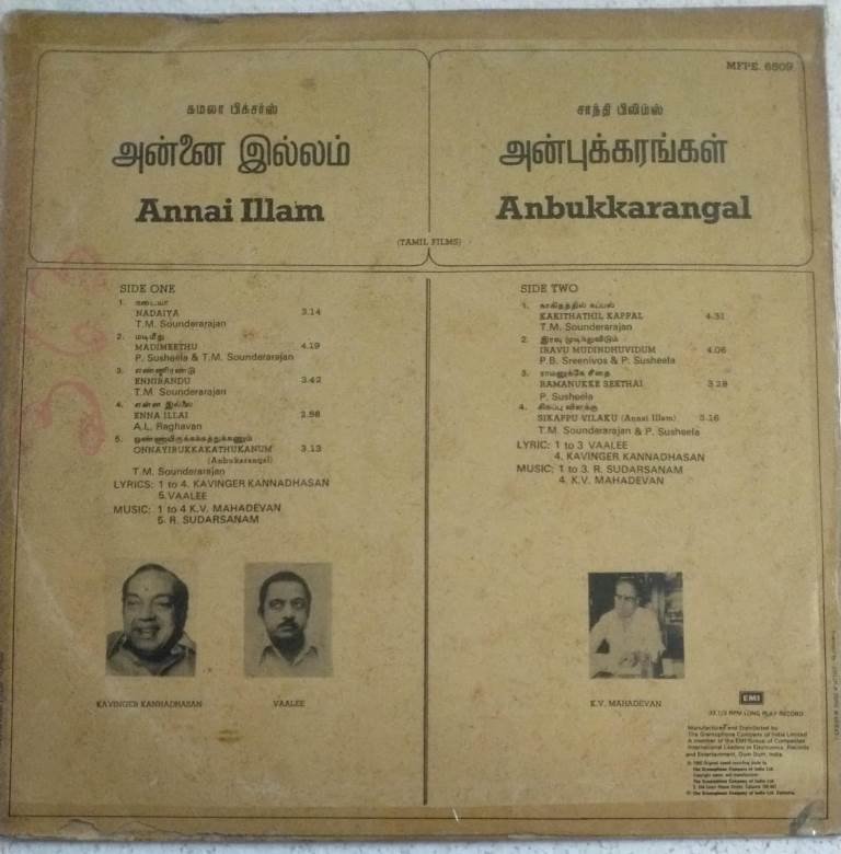 Annai Illam- Anbukarangal Tamil Film Songs LP Vinyl Record by K V Mahadevan- R Sudarshanam