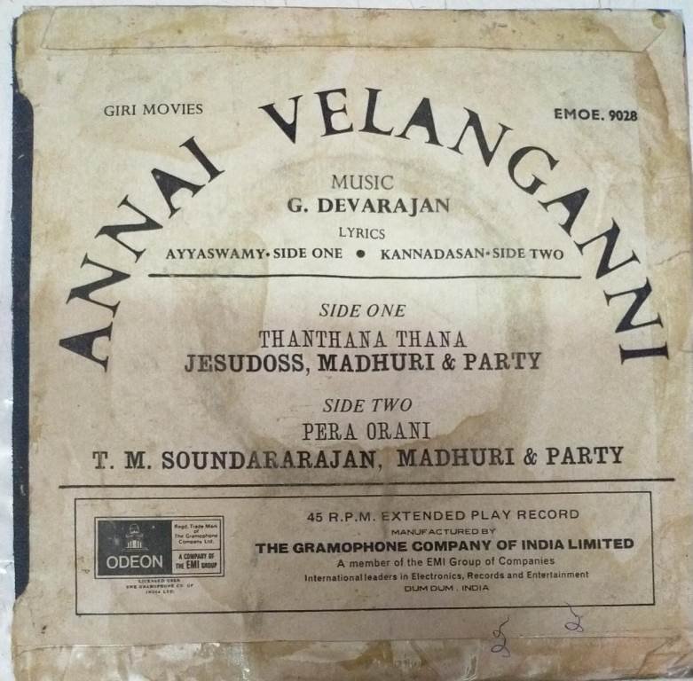 Annai Velanganni Tamil Film EP Vinyl Record by G Devarajan