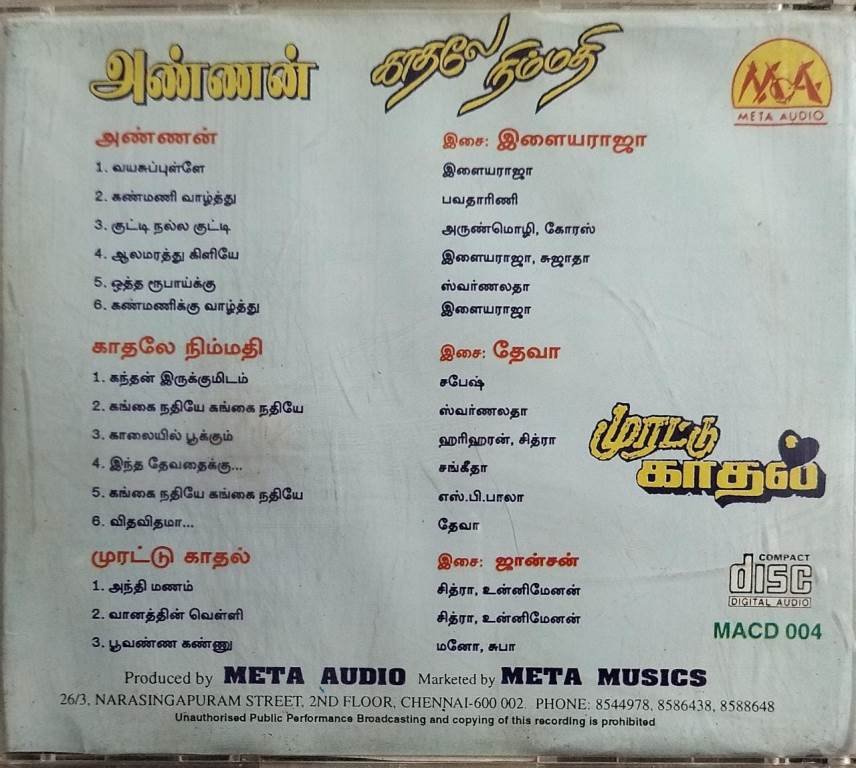 Annan- Kaathale Nimmathi- Mirattum Kadhal Tamil Film Audio CD