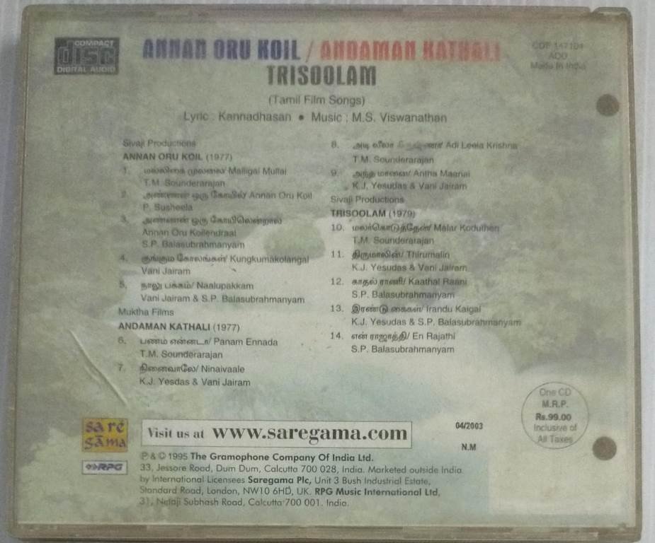 Annan Oru Koil- Andhamaan Kathali- Thirisoolam Tamil Film Audio CD