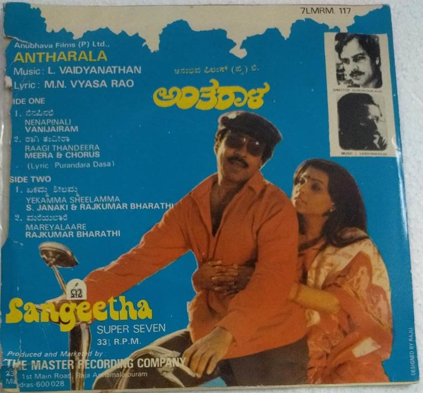 Antharala Kannada Film EP Vinyl Record by L Vaidyanathan