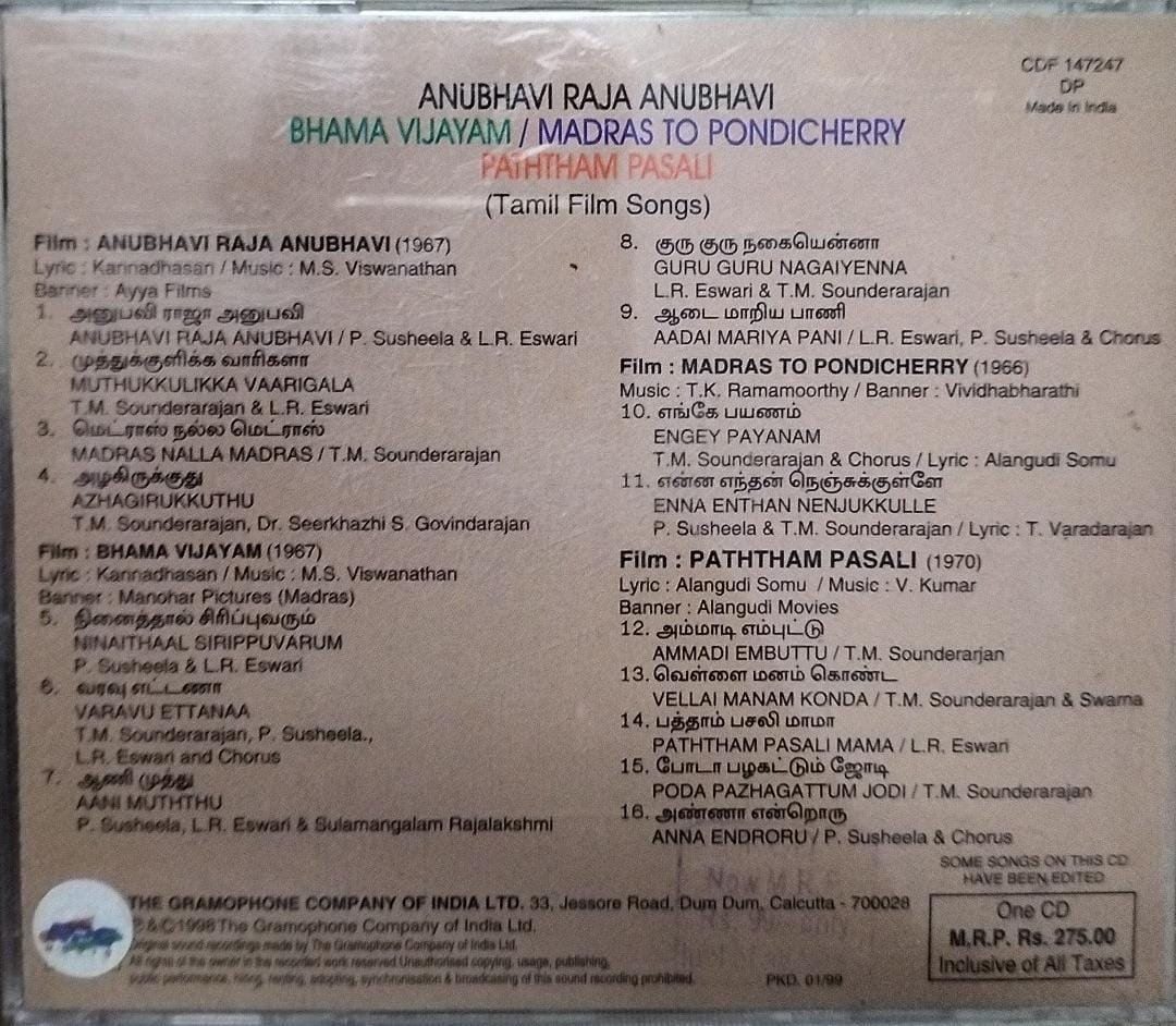 Anupavi Raja Anupavi- Bhama Vijayam- Madras to Pondichery- Patham Pasili Tamil Film Audio CD