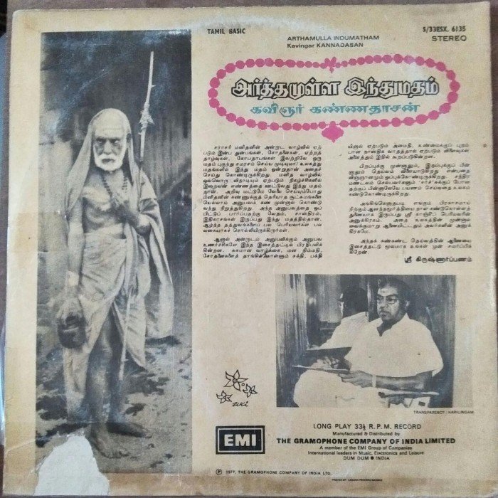 Arthamulla Indhu madham Tamil LP Vinyl Record by Kavingar Kannadasan