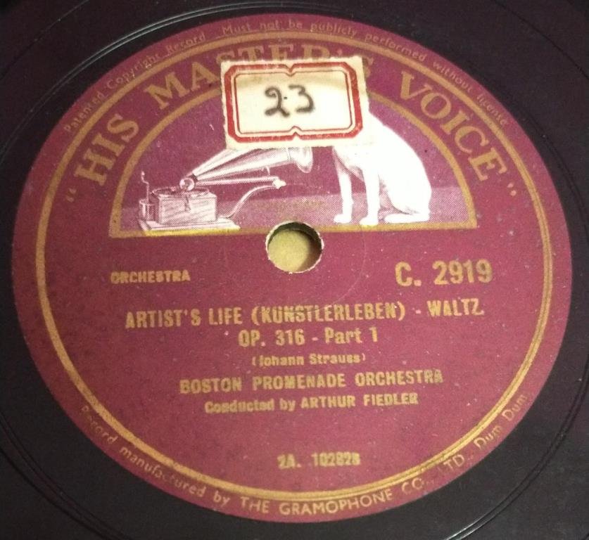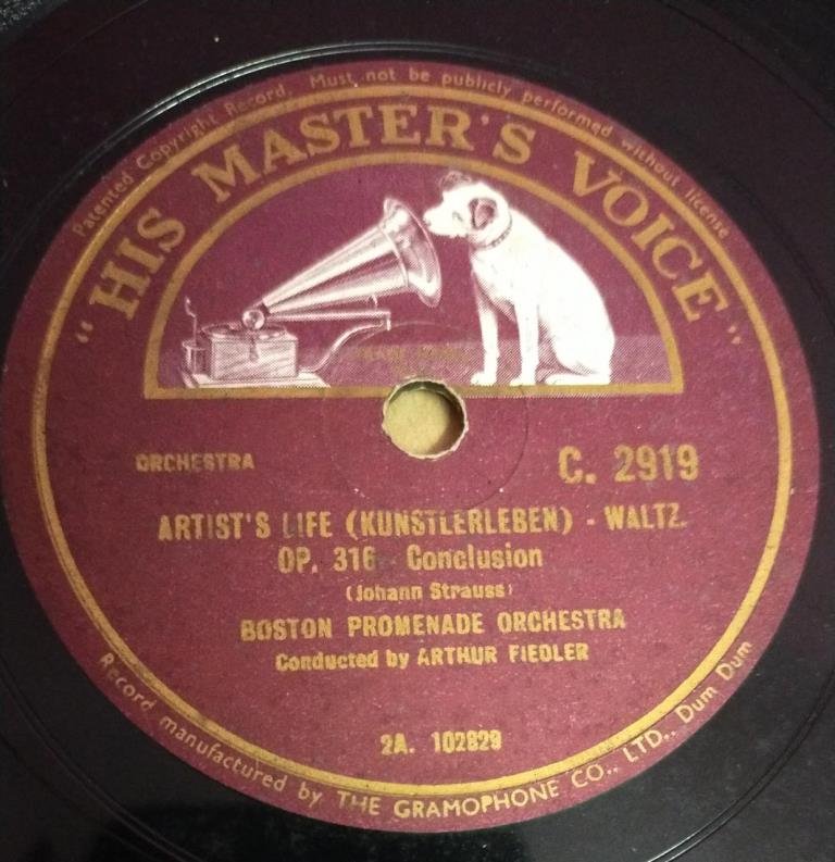Artist’s Life ( Kunstlerleben ) Waltz 78 RPM Record by Arthur Fiedler C 2919