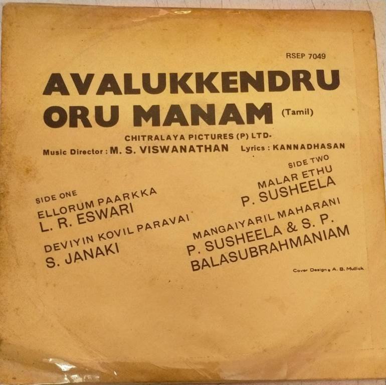 Avalukkendru Oru Manam Tamil Film EP Vinyl Record by M S Viswanathan