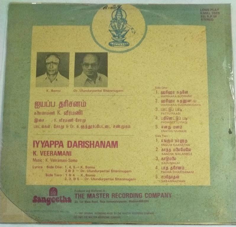 Ayyappan Dharishanam Tamil Devotional songs LP Vinyl Record by K Veeramani