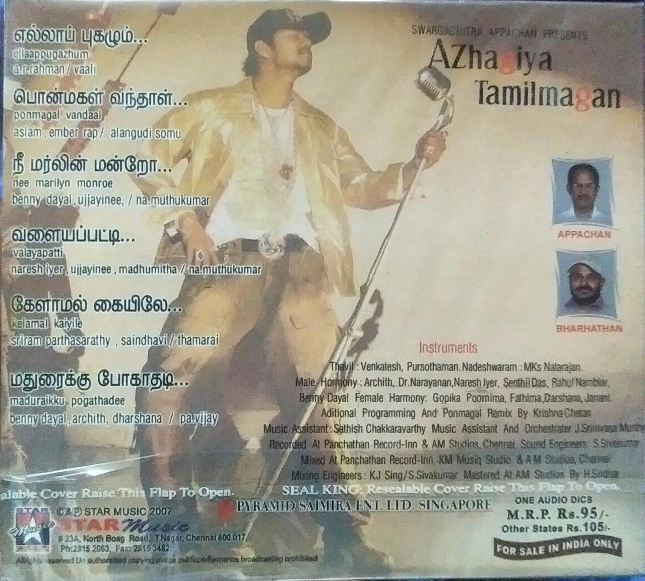 Azhagiya tamil Magan Tamil Audio CD by A R Rahman