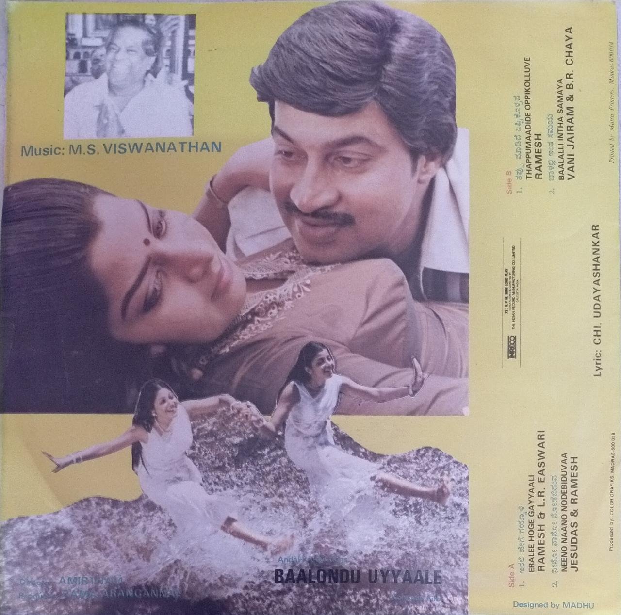 Baalondu Uyyaale kannada Film EP Vinyl Record by M S Viswanathan