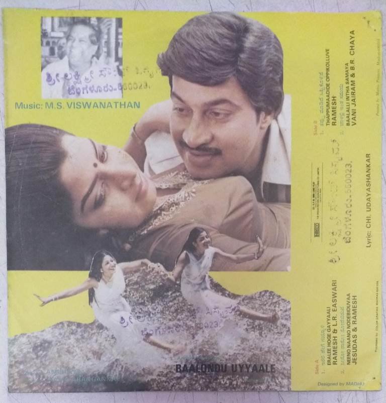 Baalondu Uyyaale Kannada FIlm EP Vinyl Record by M S Viswanthan