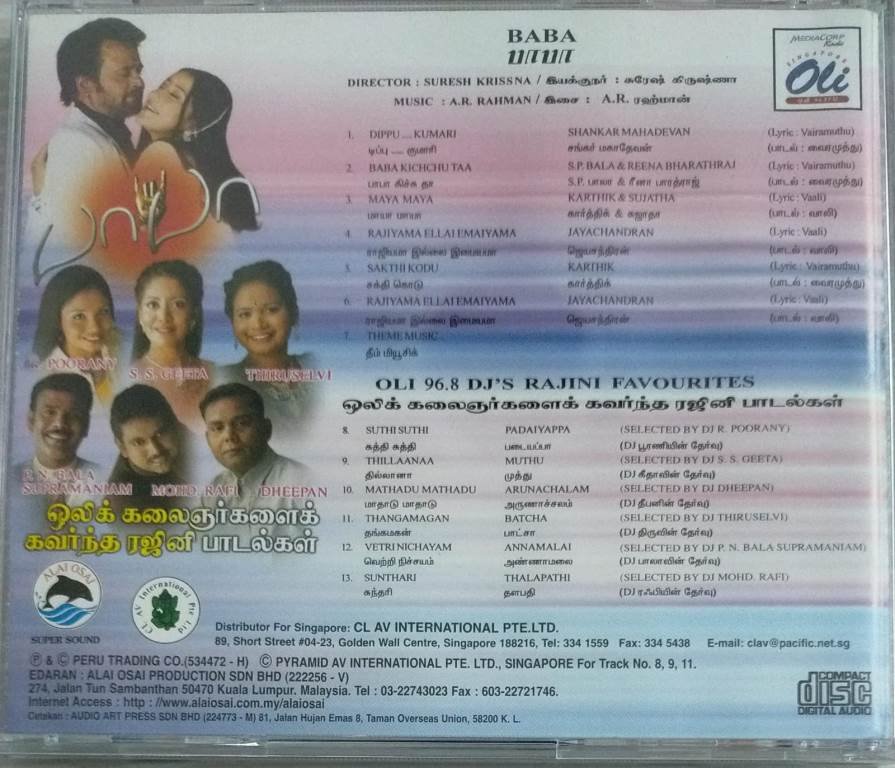 Baba – Oli 96.8 DJ’s Rajini Favourites Tamil Film songs Audio CD by AR Rahman