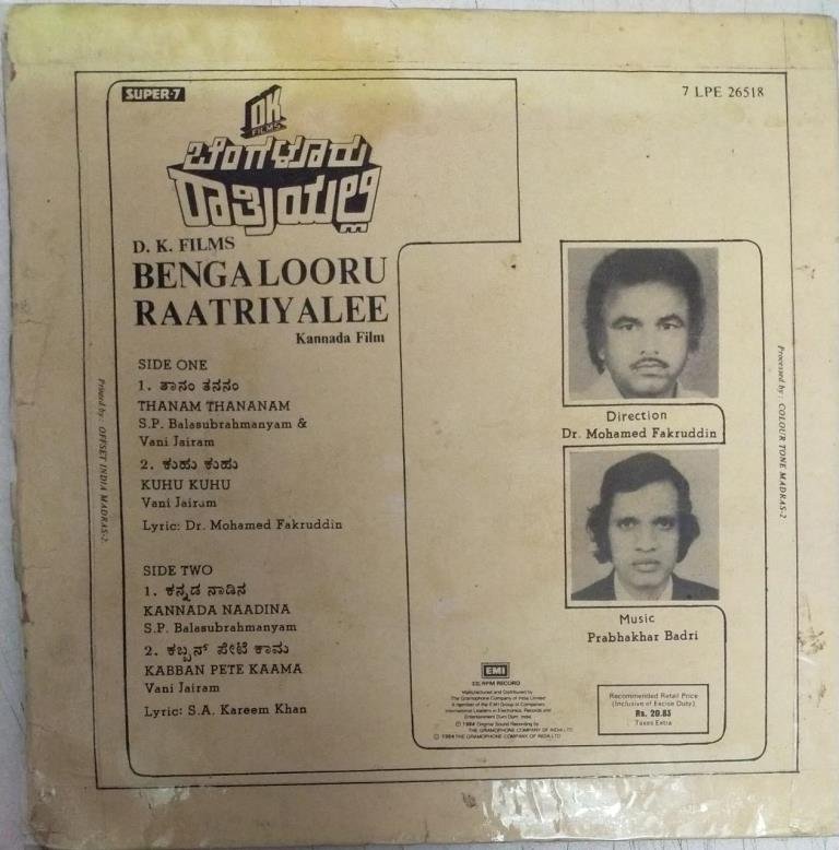 Tittle :Bengalooru Raatriyalee
