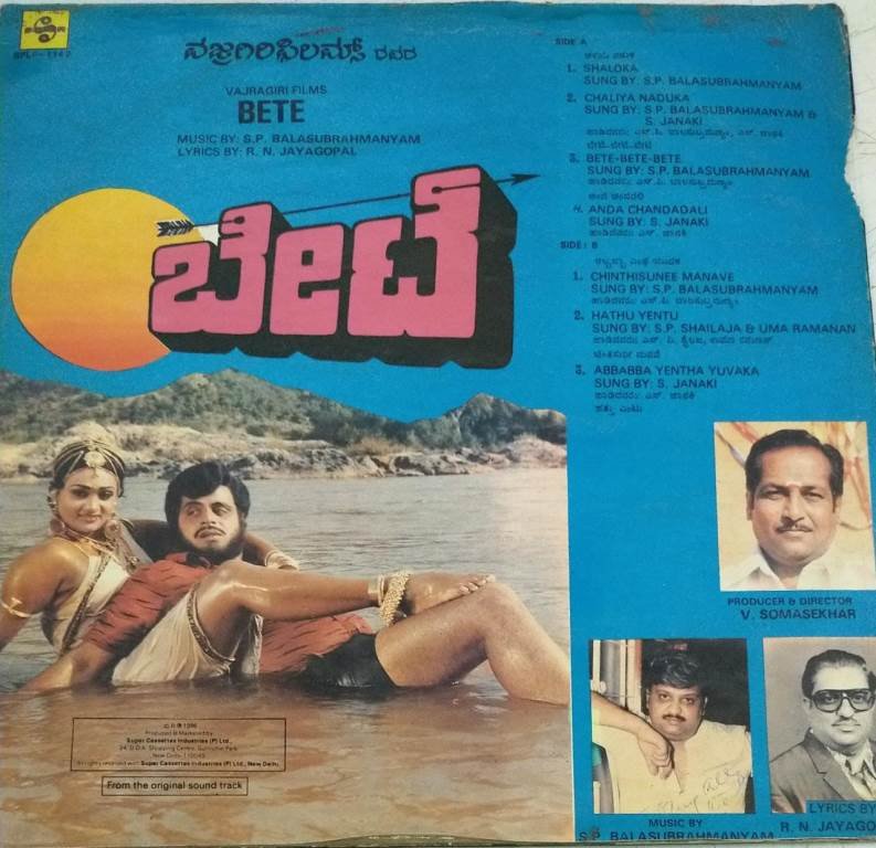 Bete Kannada Film LP Vinyl Record by SP Balasubramaniam