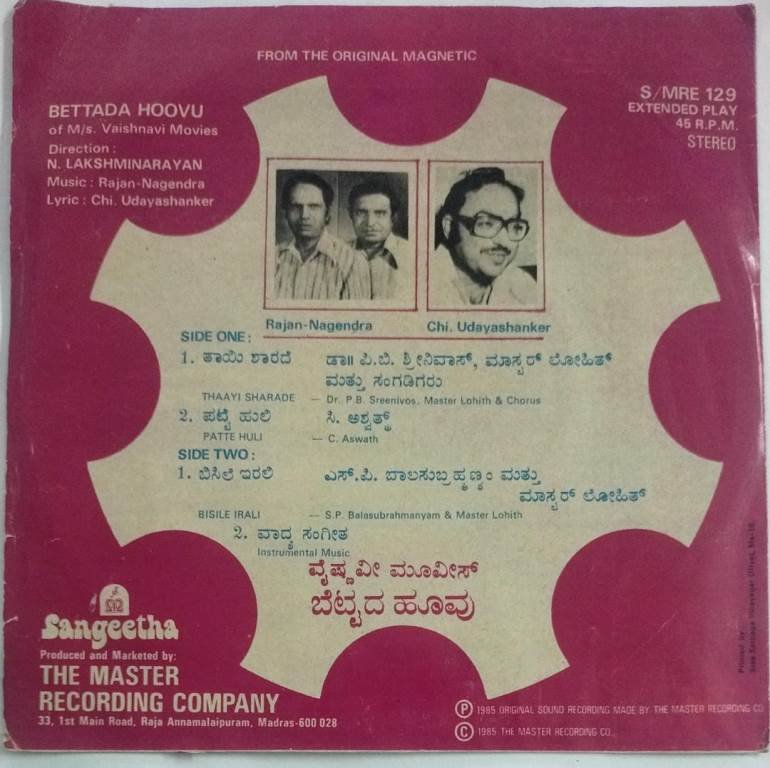 Bettada Hoovu Kannada Film EP Vinyl Record by Rajan Nagendra