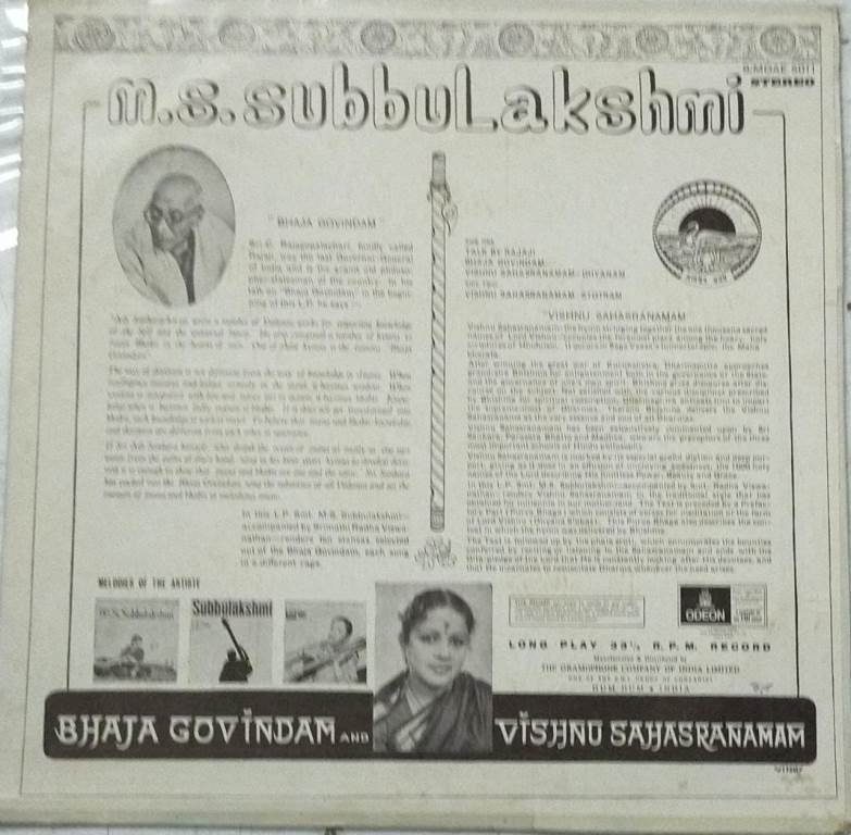 Bhaja Govindam Vishnu Sahasranamam Hindu Devotional LP Vinyl Record by MS Subbulakshmi