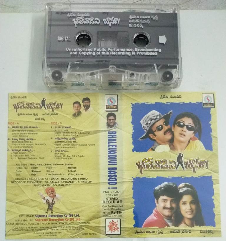 Bhalevadivi Basoo Telugu Film Audio Cassette