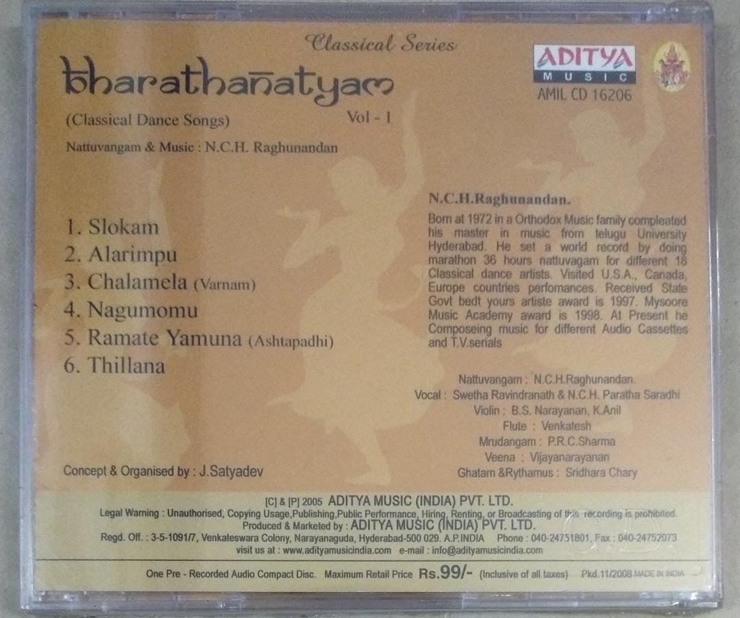 Bharathanatyam Classical Dance songs Vol 1 Audio CD