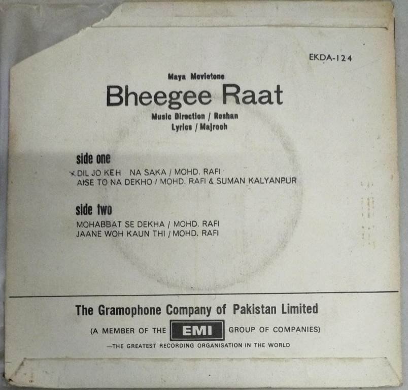 Bheegee Raat Hindi Film EP Vinyl Record by Roshan