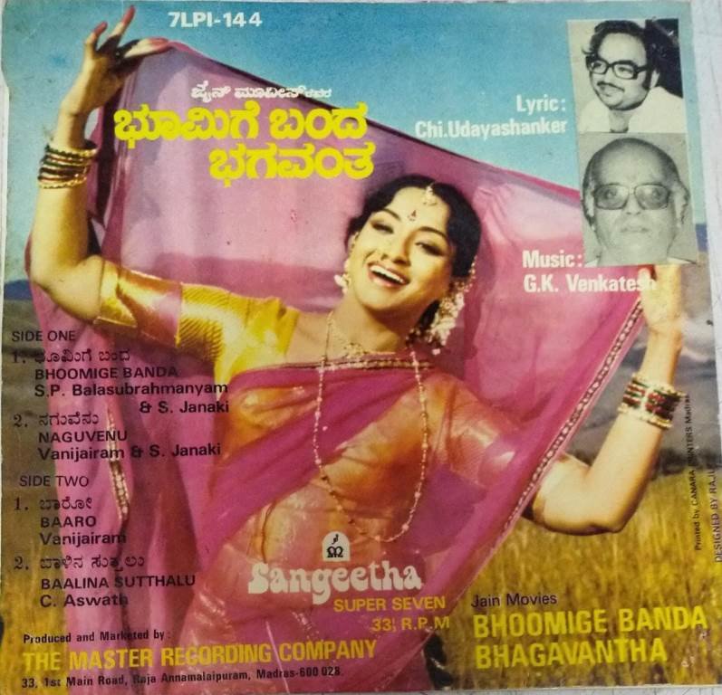 Bhoomige Banda Bhagavantha Kannada Film EP Vinyl Record by G K Venkatesh