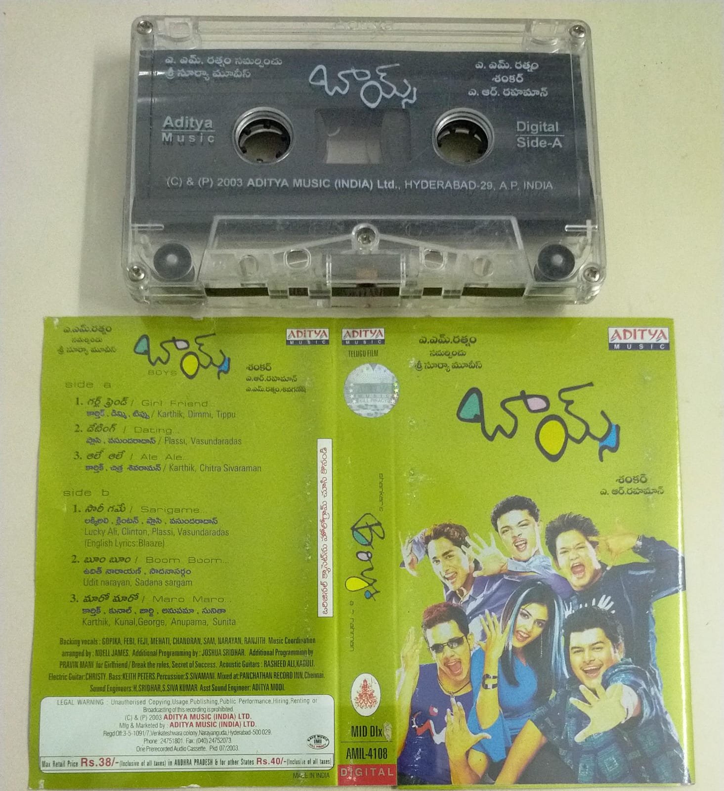 Boys Telugu Film songs Audio Cassette by A R Rahman