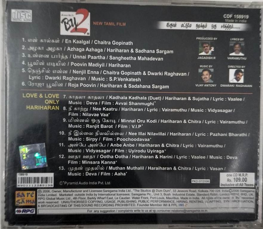 By2 Tamil Film Audio CD by Vijay Antony
