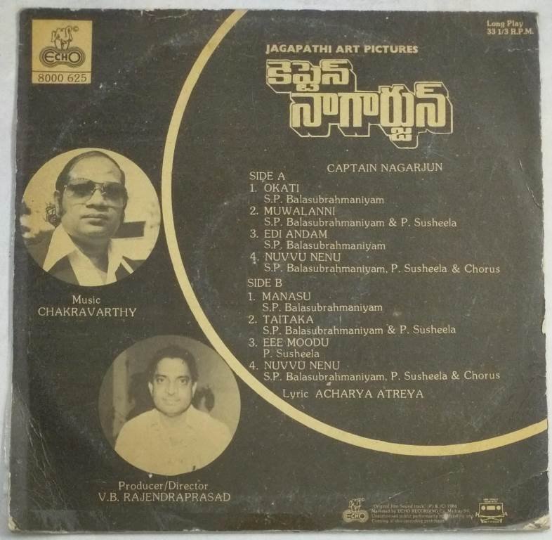 Captain Nagendra Telugu Film L P Vinyl Record by Chakravarthy