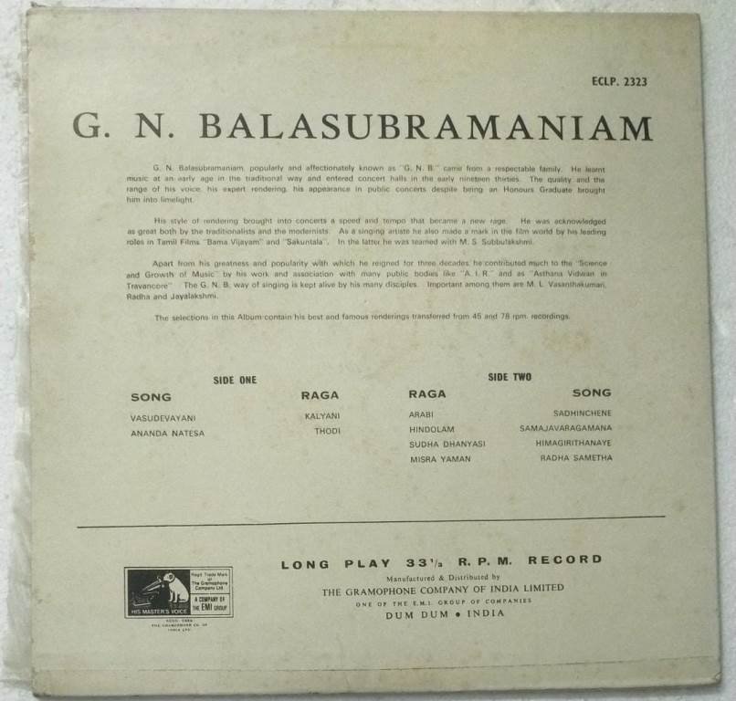 Carnatic Classical LP Vinyl Record by G N Balasubramaniam