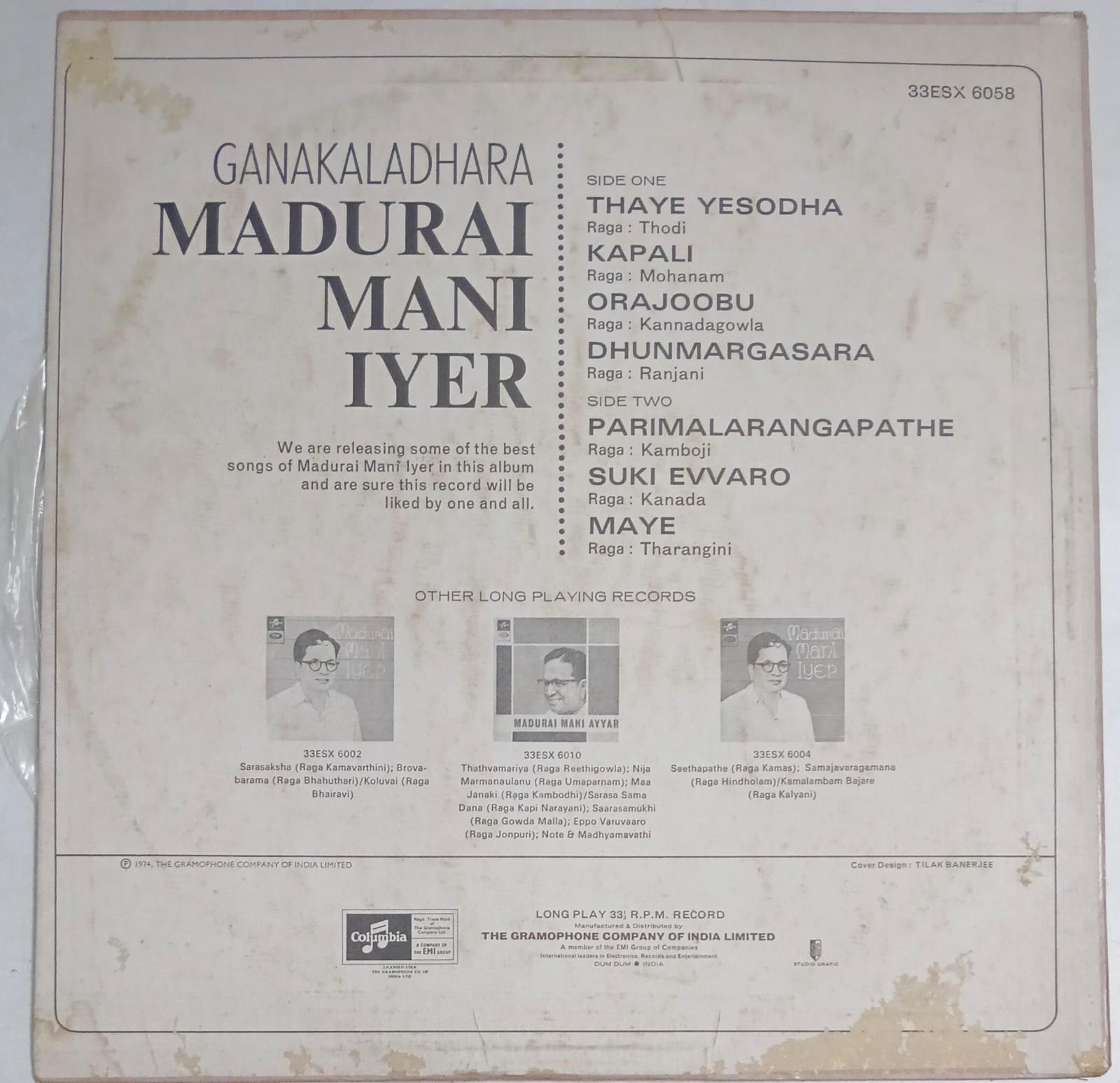 Carnatic Classical Vocal LP Vinyl Record by Madurai Mani Iyer
