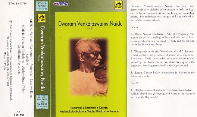 Carnatic Violin Audio Cassette by Dwaram Venkatasamy Naidu