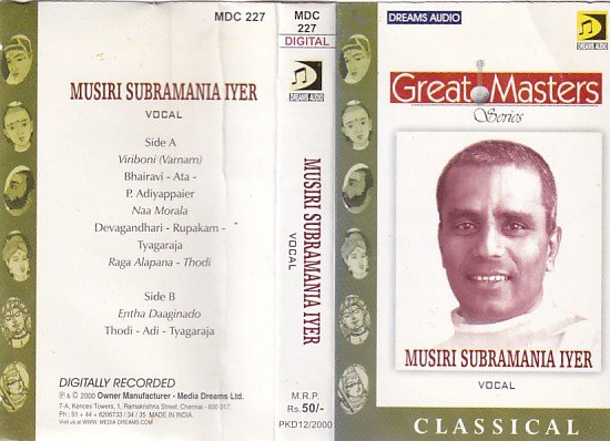 Carnatic Vocal Audio Cassette by Musiri Subramaniya Iyer