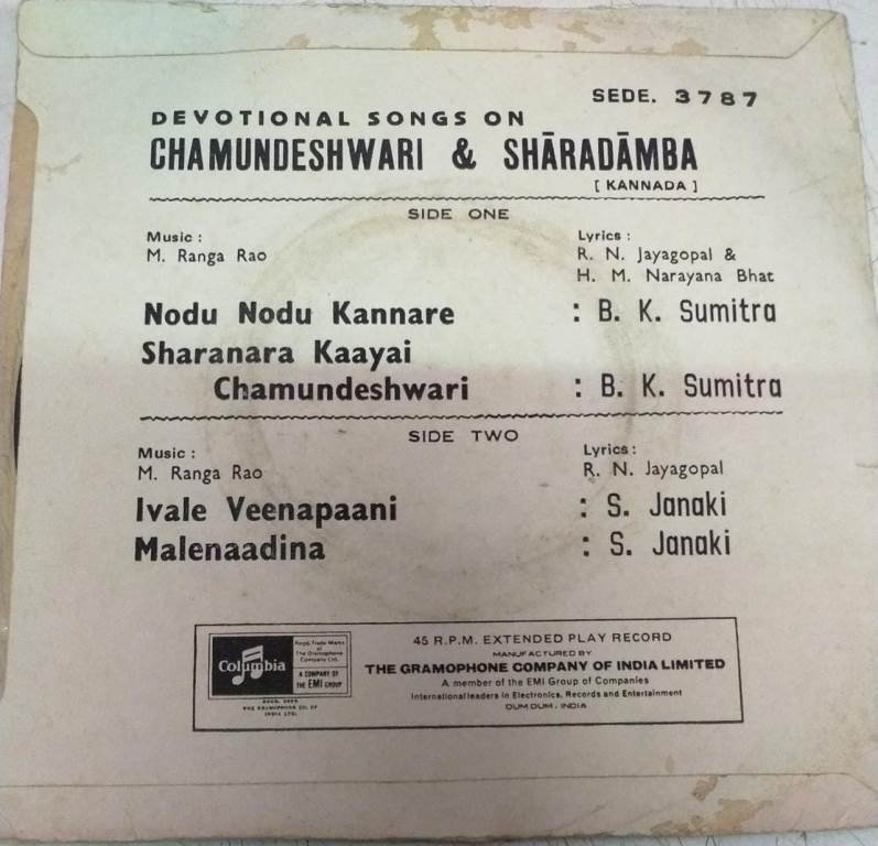 Chamundeshwari – Sharadamba Kannada Devotional songs EP Vinyl Record by M Ranga Rao