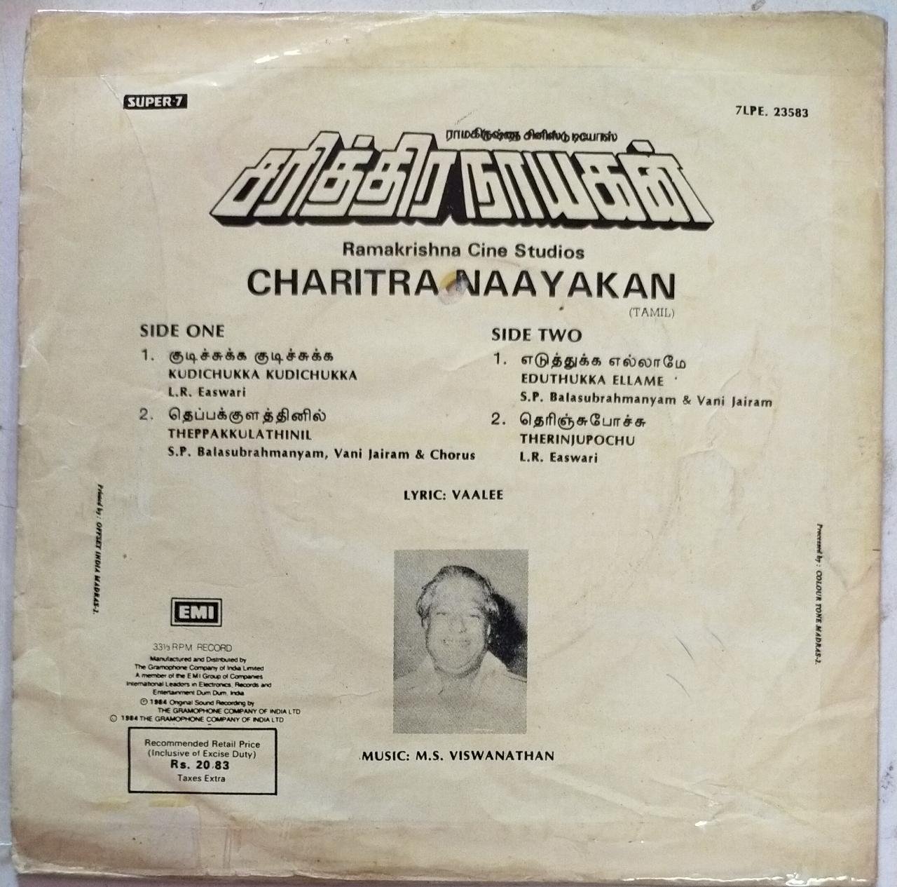 Charitra Naayakan Tamil Film EP Vinyl Record by M.S.Viswanathan