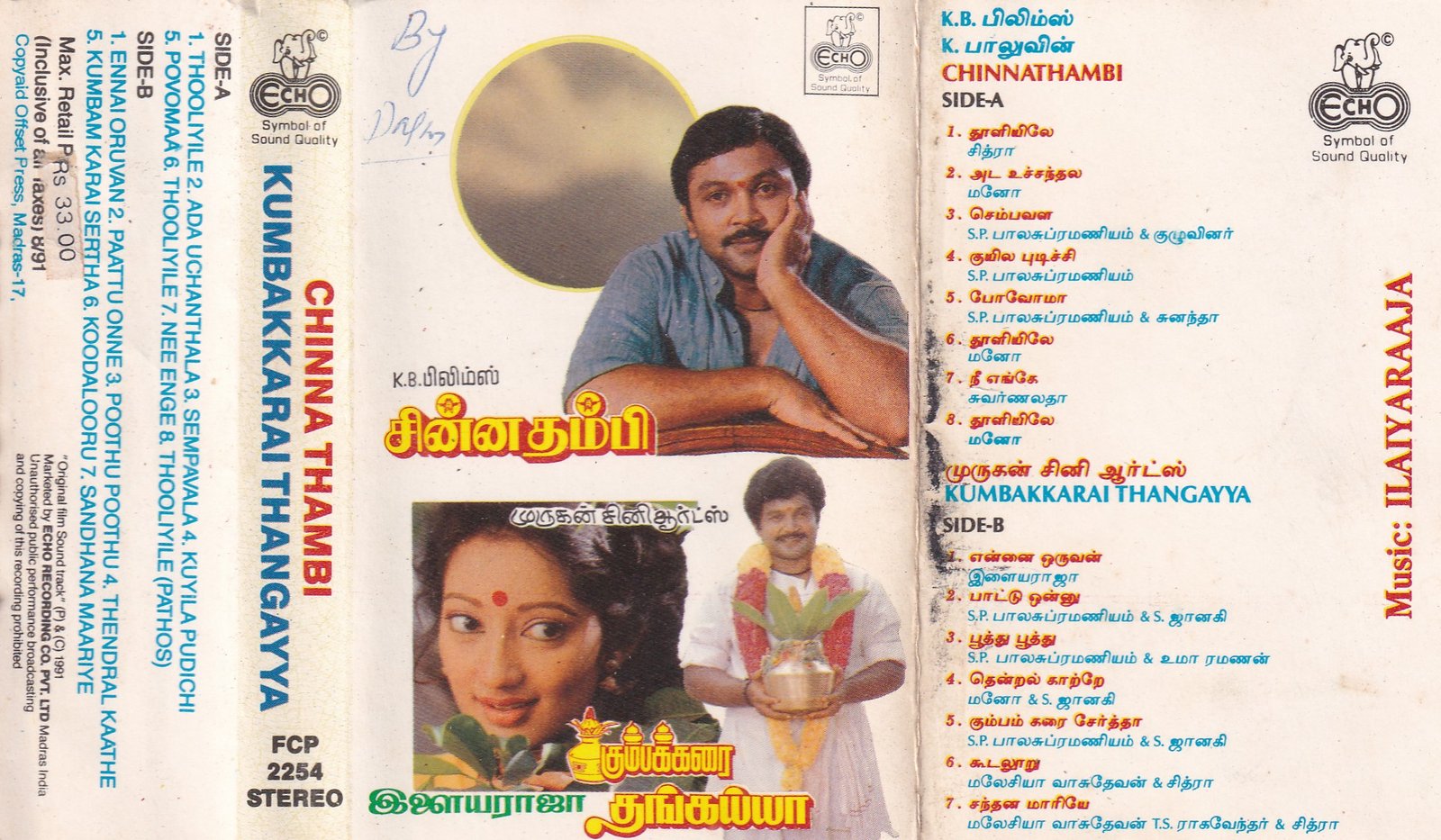 Chinna Thambi- Kumbakara Thangayya Tamil Film Audio Cassette by Ilayaraaja