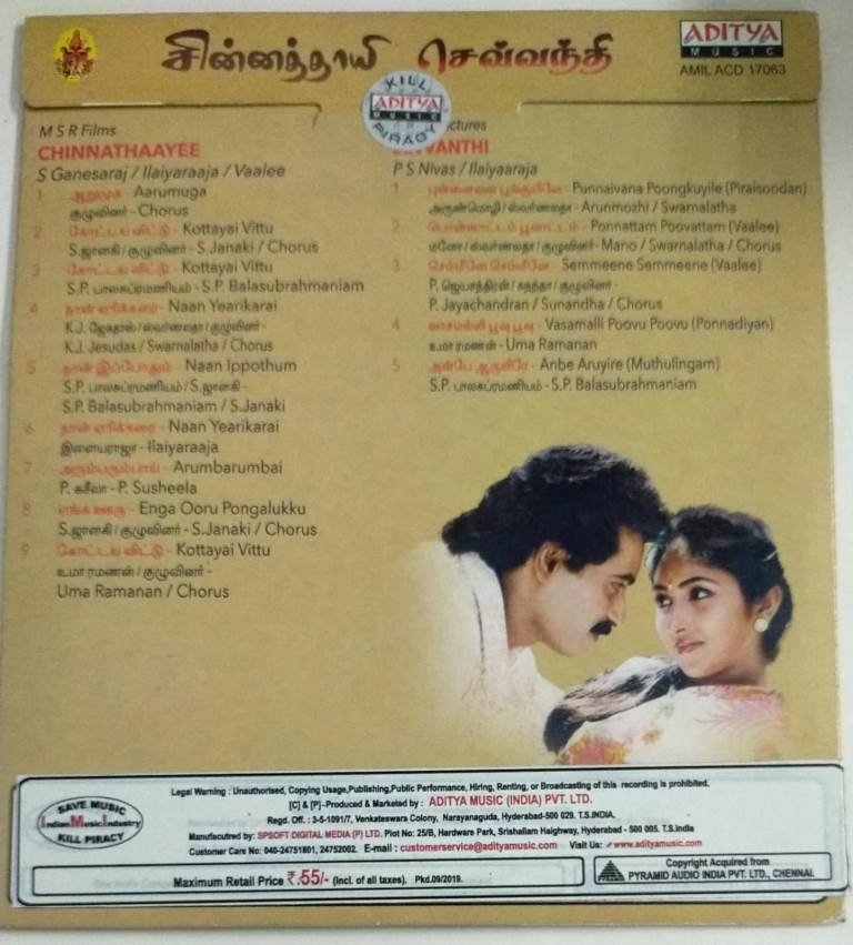 Chinnathayee- Sevanthi Tamil Film Audio CD by Ilayaraaja