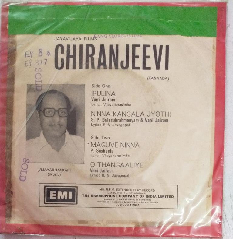 Chiranjeevi Kannada Film EP Vinyl Record by Vijayabhaskar