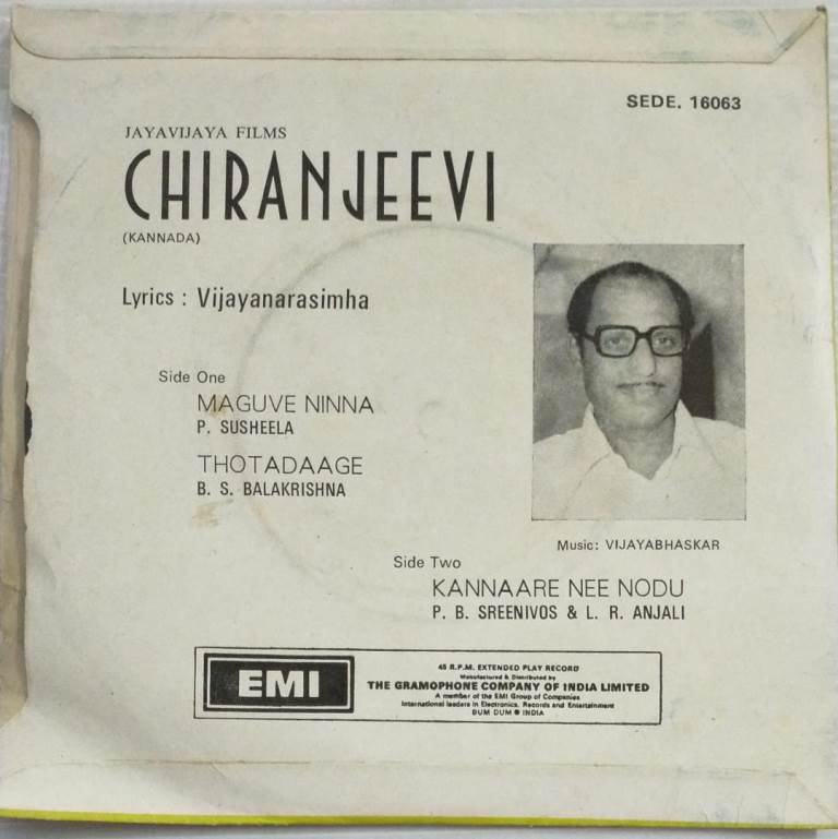 Chiranjeevi Kannada Film EP Vinyl Record by Vijayabhaskar